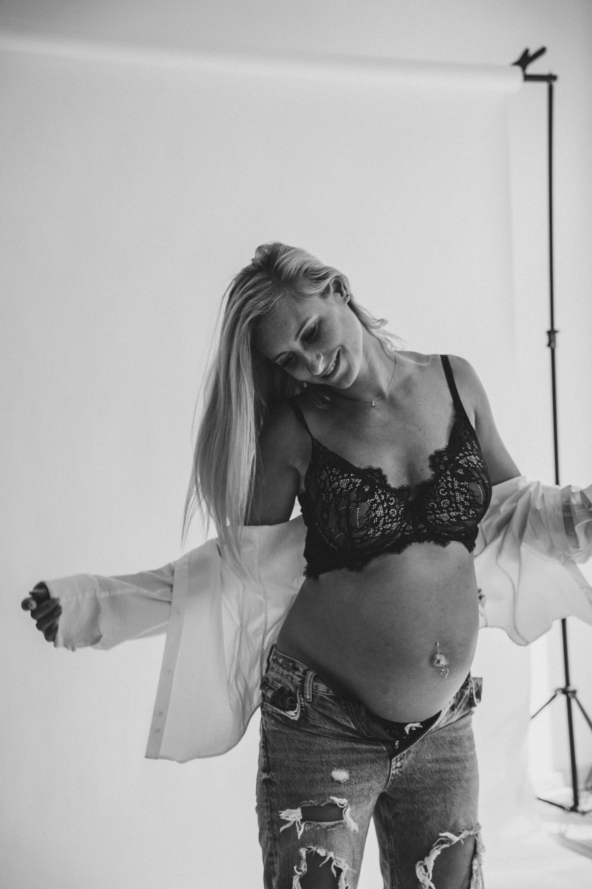 Ich mache Nahaufnahmen vom Bauch und von Händen auf dem Bauch. Darum denken Sie über Maniküre und Pediküre im Voraus nach.